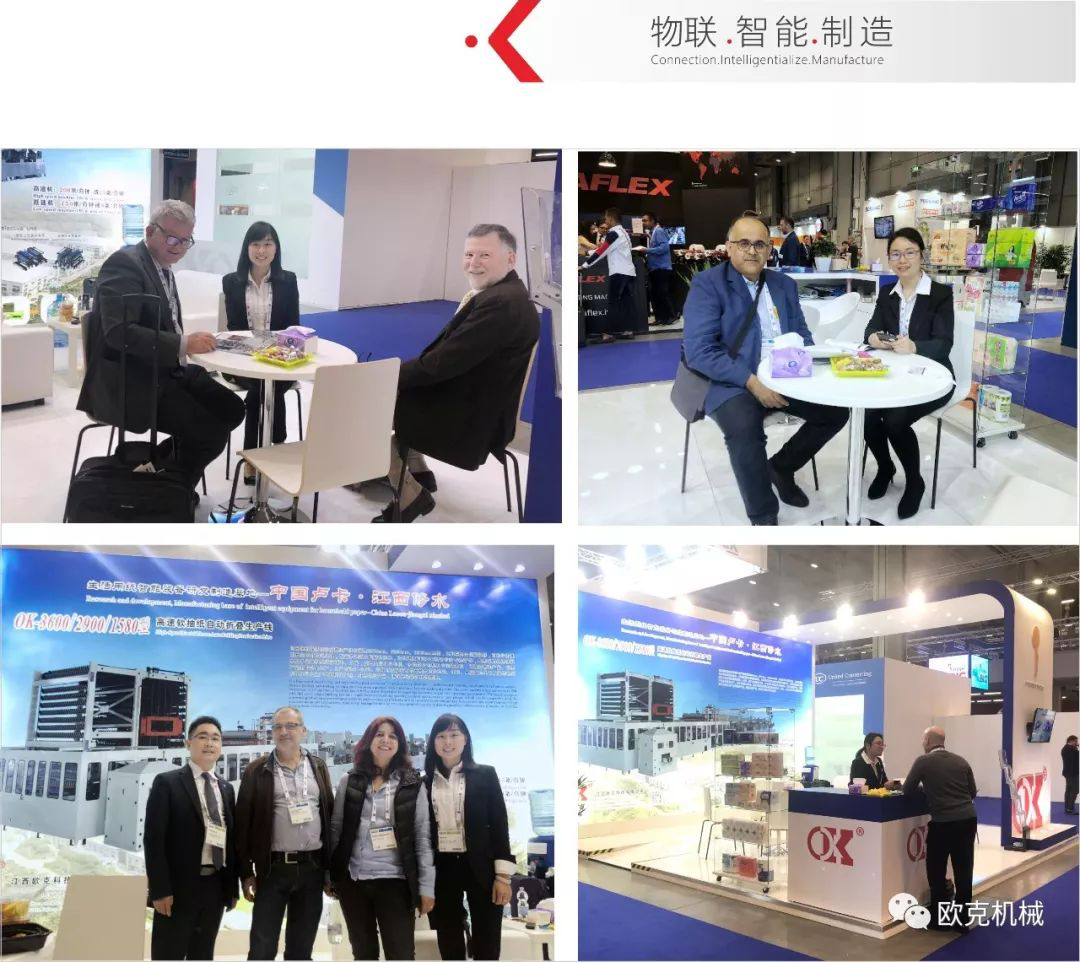 本次展會(huì)吸引來(lái)自世界各地的衛(wèi)生紙業(yè)專(zhuān)才將齊聚在意大利。展會(huì)開(kāi)始后,歐克科技展廳機(jī)得到新老客戶(hù)的關(guān)注與支持,現(xiàn)場(chǎng)交流咨詢(xún)氛圍活躍,通過(guò)對(duì)歐克科技的生活用紙全自動(dòng)化生產(chǎn)線(xiàn)的結(jié)構(gòu)特點(diǎn)及適用介紹,讓歐洲客商們對(duì)中國(guó)制造有了新的認(rèn)識(shí),對(duì)歐克科技有著深入的了解,展會(huì)第一天即得到多家客商邀約進(jìn)行下一步的合作洽談。